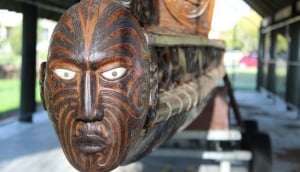 El paseo por Memorial Drive desde los Jardines del Gobierno lleva al Te Arawa Waka Taua, una canoa ceremonial de 20 metros bajo un refugio decorativo. Está cubierta de tallas maoríes decorativas y conchas de paua.