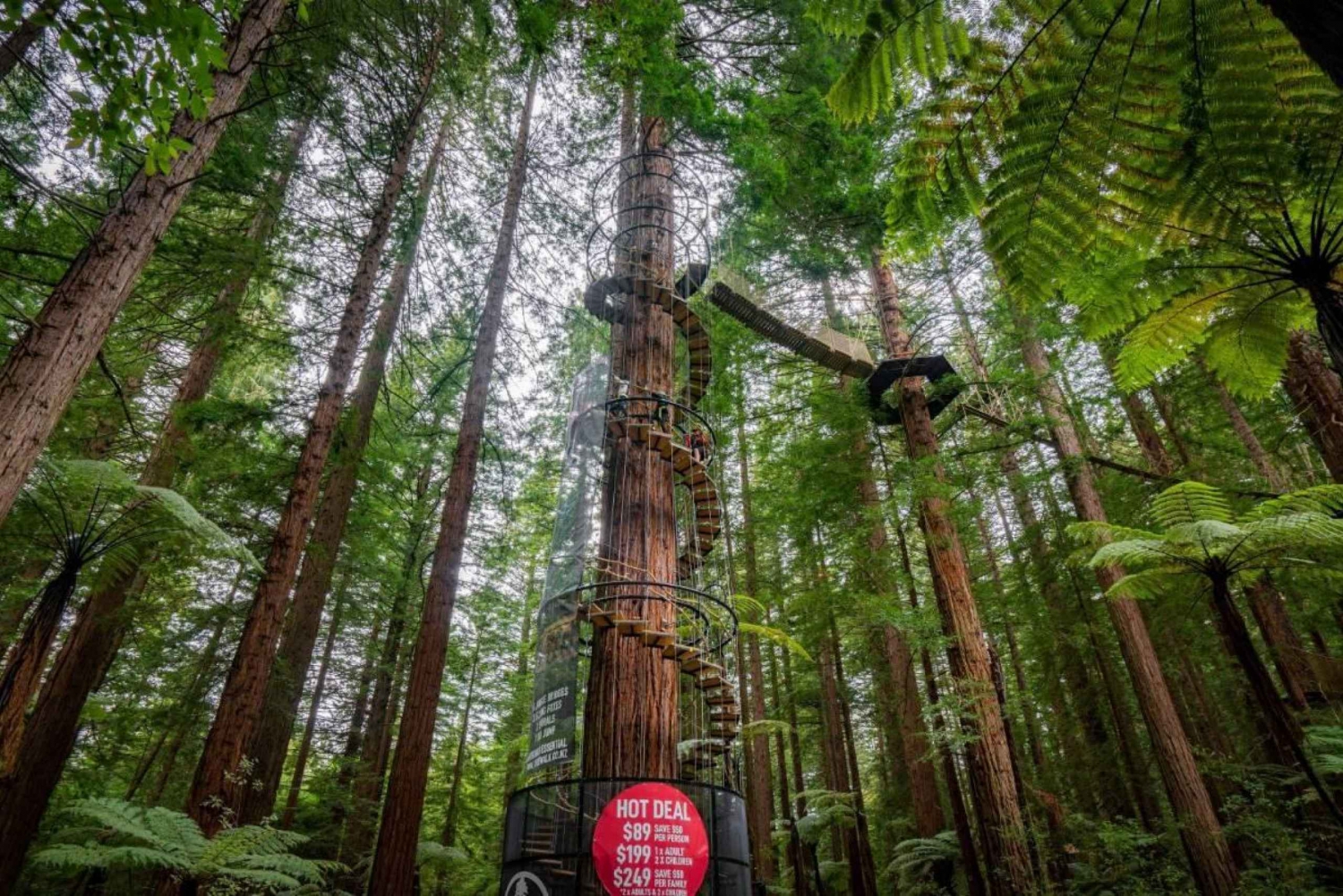 Nauti lounas Rotoruan kaupungissa. Ateria ei sisälly hintaan. Siirry sitten punapuumetsään ja Whakarewarewa-metsään. Tutustu upeiden maastopyöräily- ja kävelyreittien verkostoon ja Kalifornian rannikon punapuumetsiköiden upeaan metsikköön.