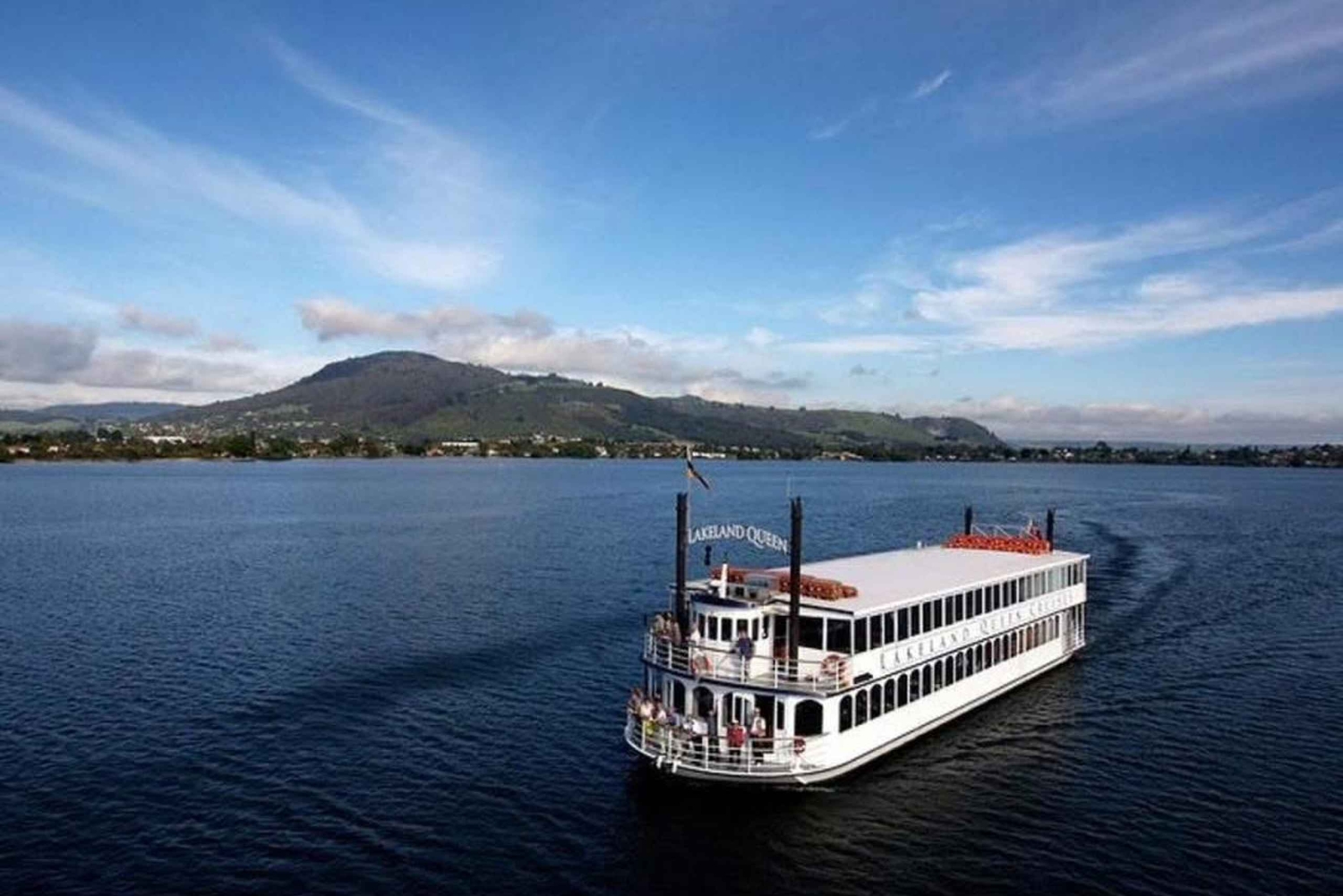 Experience Lake Rotorua on a paddle steamer cruise. Choose a sightseeing cruise or a buffet dining experience with a selection of dishes inspired by fresh local flavors.